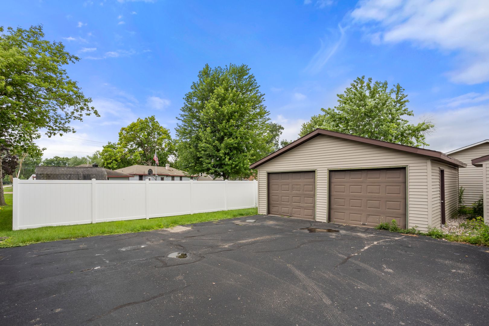 Shared driveway with a detached 1-car garage for convenient off-street parking